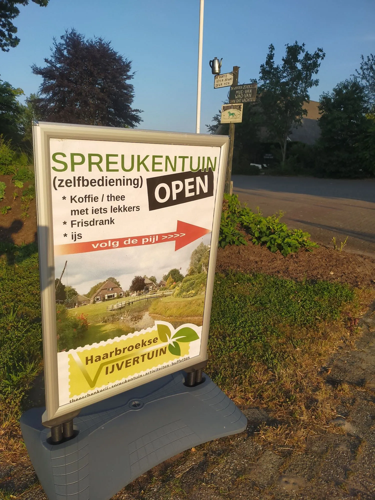 De Spreukentuin en het rustpunt zijn dagelijks geopend. De zaal alleen voor groepen op afspraak. Tot ziens bij "De Haarbroekse Vijvertuin".